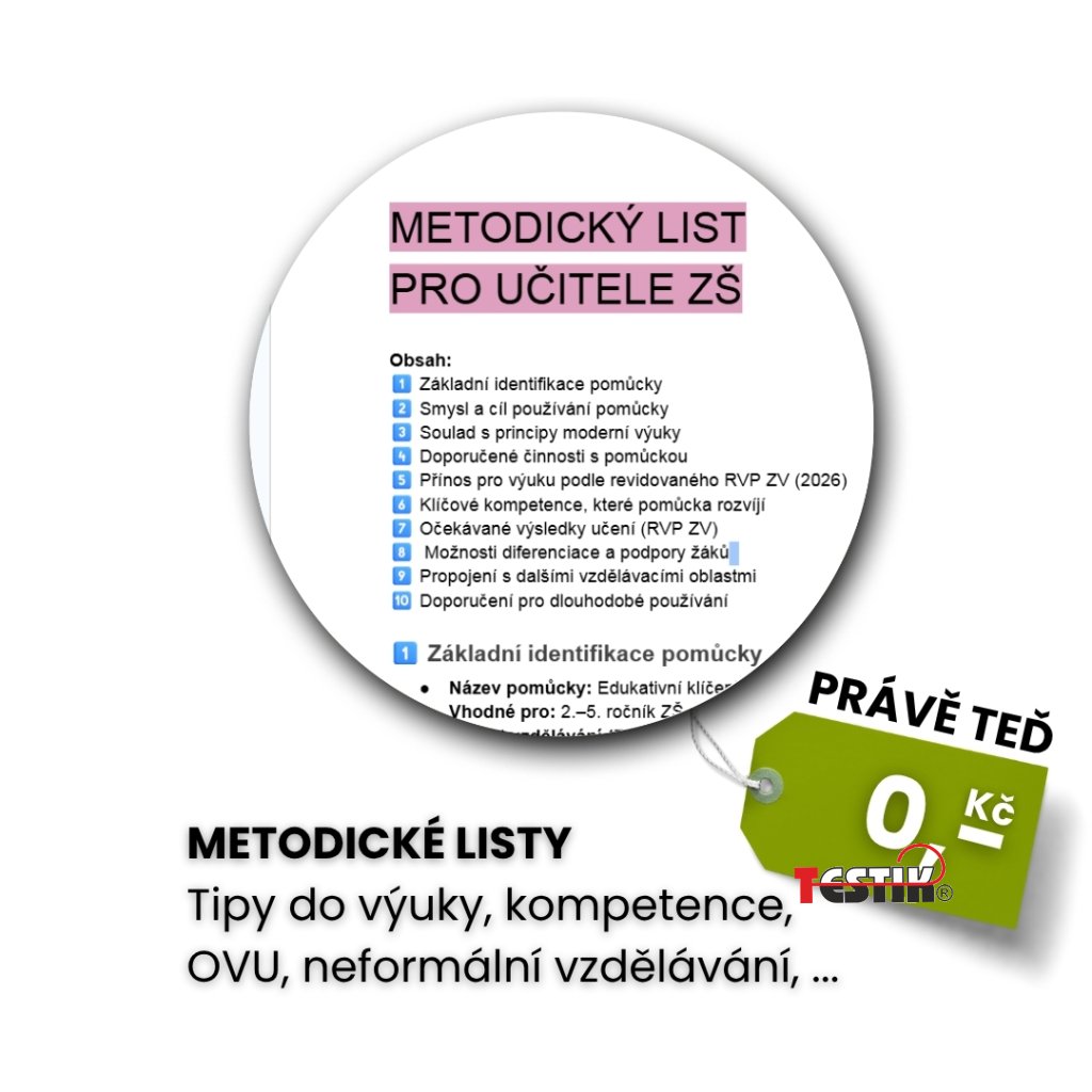 Metodický list k edukativním klíčenkám Testík® shrnuje vše, co potřebujete vědět k jejich smysluplnému využití ve výuce i mimo ni.