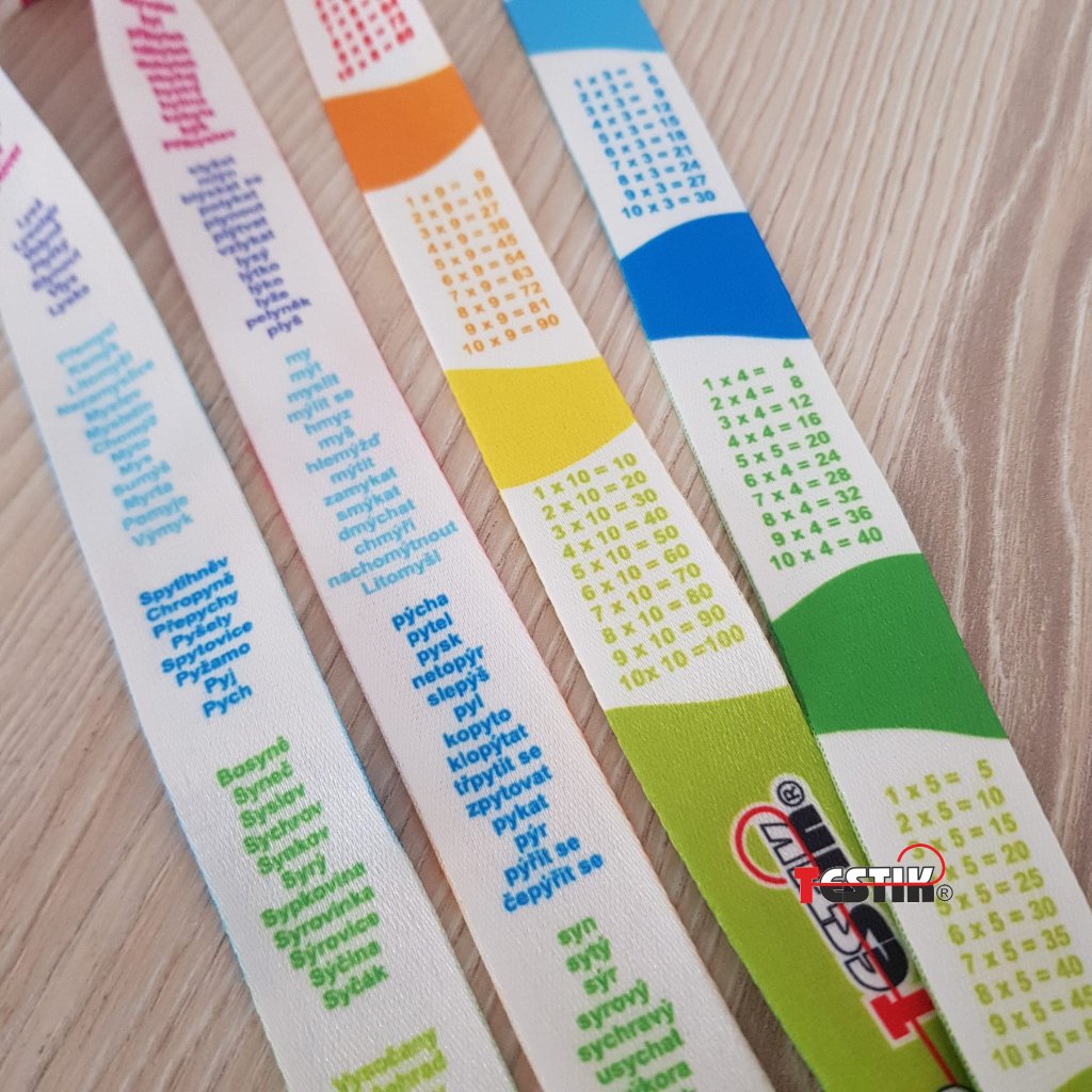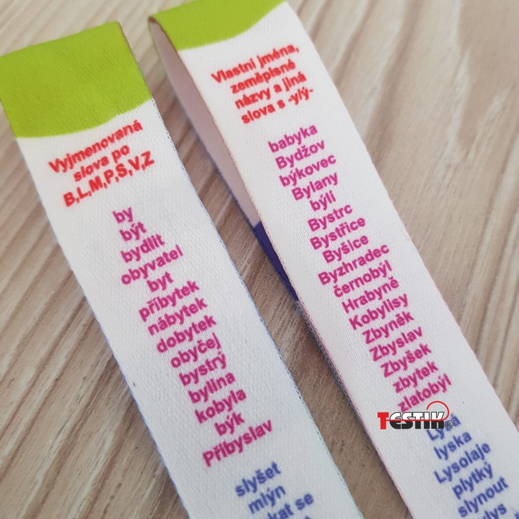 Edukační klíčenka na krk s vyjmenovanými slovy a násobilkou