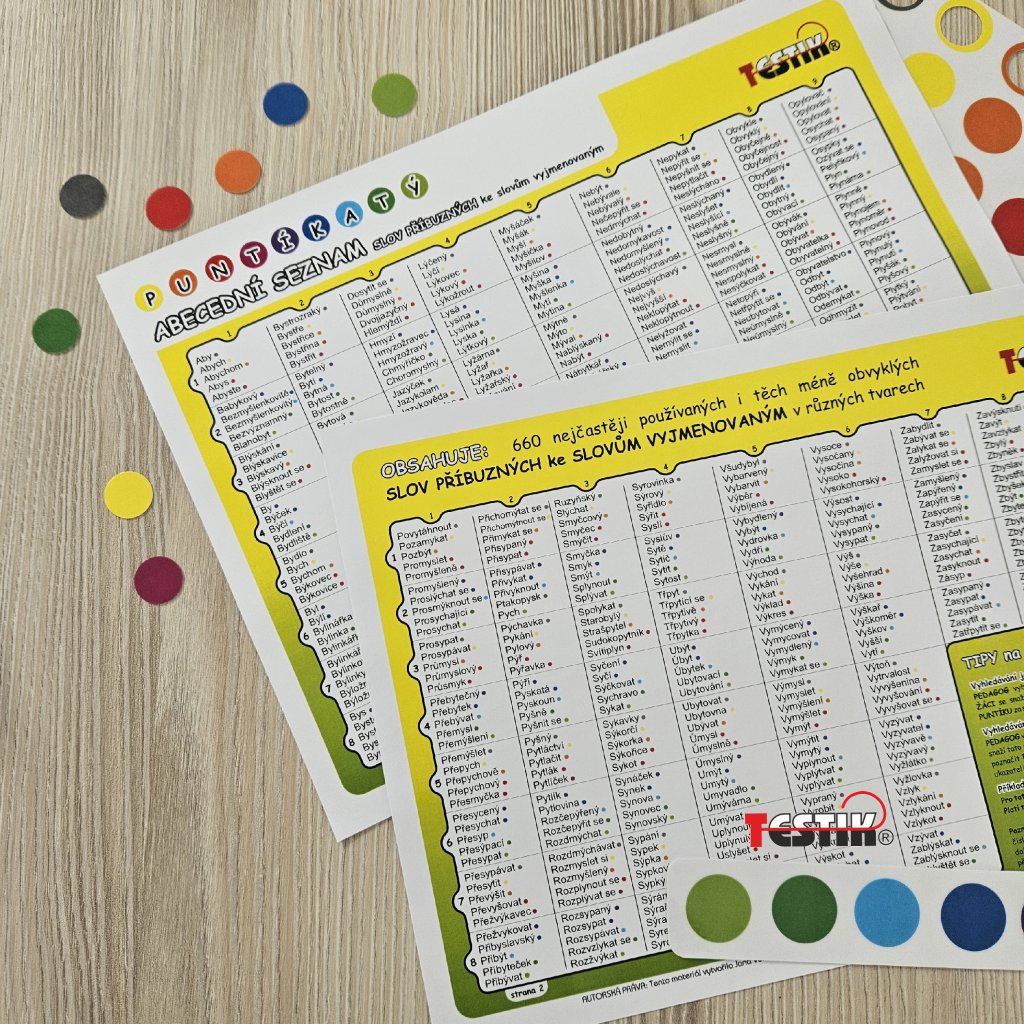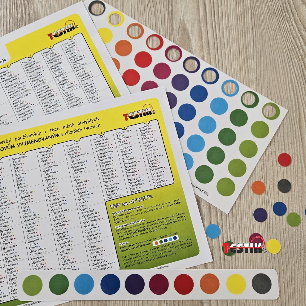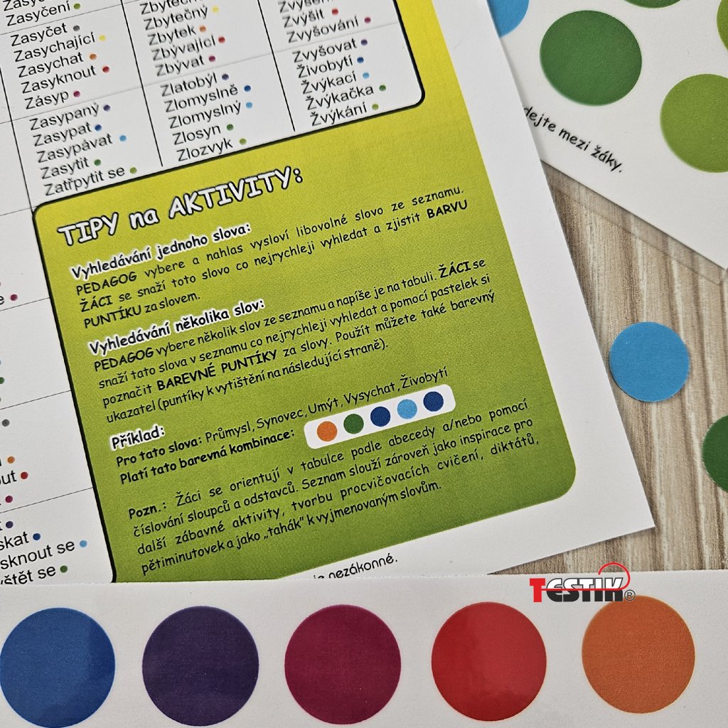 - Každé slovo opatřeno barevným puntíkem (pro jednodušší zadávání úloh a tvorbu her)