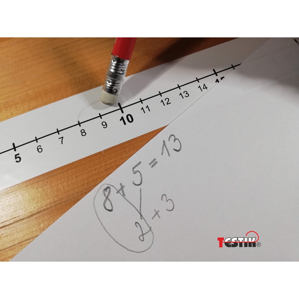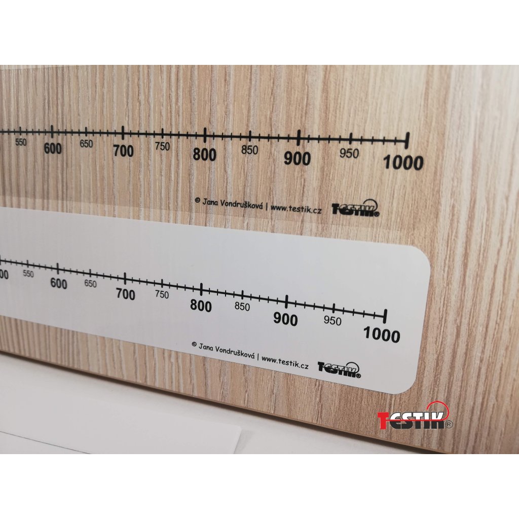 Samolepka slouží jako vizuální pomůcka - není určená k popisování....ALE....její hladký povrh dovoluje po ní lehce psát tužkou a následně bez zanechání stop gumovat! Nicméně může dojít k předčasnému poničení potisku. Chcete-li přece jen číselnou osu popisovat, doporučujeme tyto produkty, které zahrnují číselnou osu určenou přímo k opakovanému popisování a mazání: